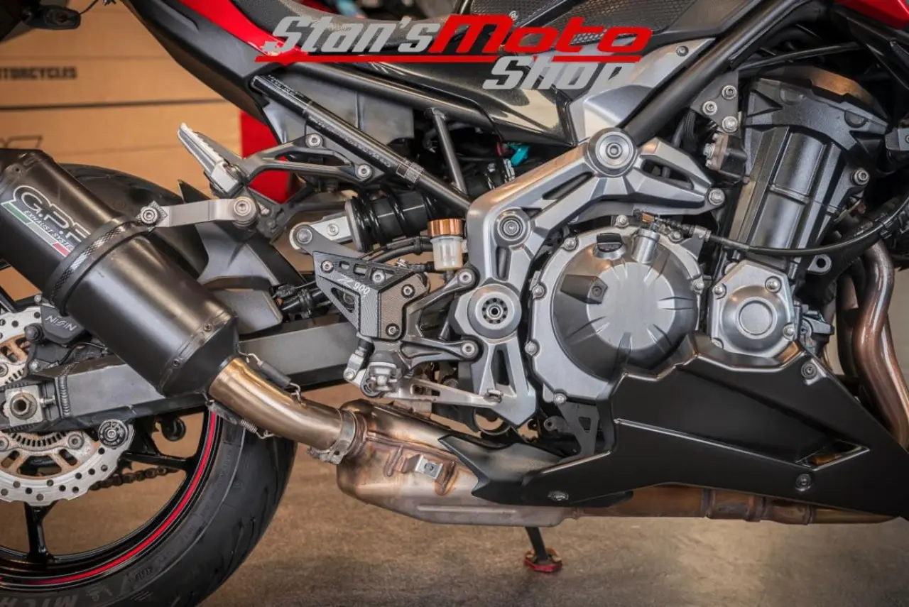 G.P.R Slip-on avgassystem, Kraschpuckar, Svingrullar, Tail-Tidy med LED-blinkers, Kylarskydd med Z900-modellbeteckning, Aluminiumlock till bromsvätska fram & bak, justerbara broms & kopplingshandtag, styrändsspelgar, mm..