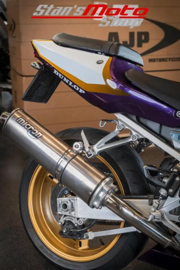 Detta exemplar är uppgraderat med ett Slip-on från Micron, Kraschpuckar, Tail-tidy och justerbara broms & kopplingshandtag.