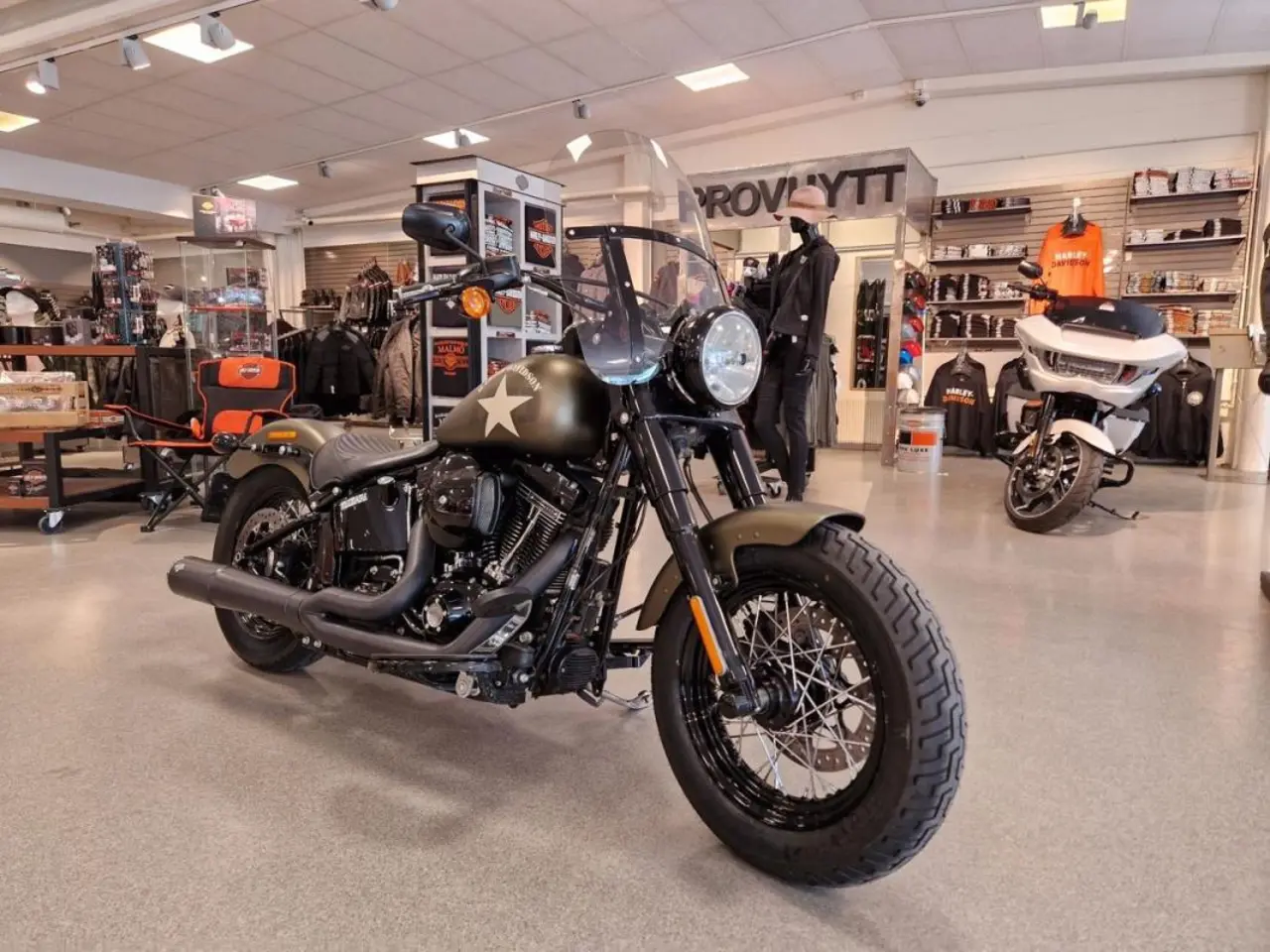 Softail Slim S är en uppgraderad variant av Softail Slim med 110 CI Screamin Eagle motor och militärinspirerad motivlack på bensintanken. En otroligt populär hoj för den som vill ha något unikt. Nyservad, låga mil och helt rätt utrustning.
