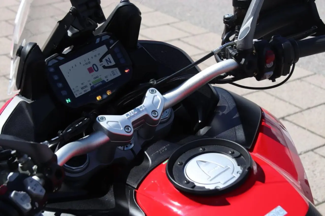 Multistrada 950S kommer med den riktigt slipade skyhook fjädringen, som låter föraren ställa in den precis så som de önskar, samtidigt som det går att justera för den packning man har med sig på sommarens äventyr. Denna 950S har också utrustats med Ducatis originalväskor, så packning är inte bara superenkelt utan också färgmatchat med motorcykeln med ett snyggt dekalkit!