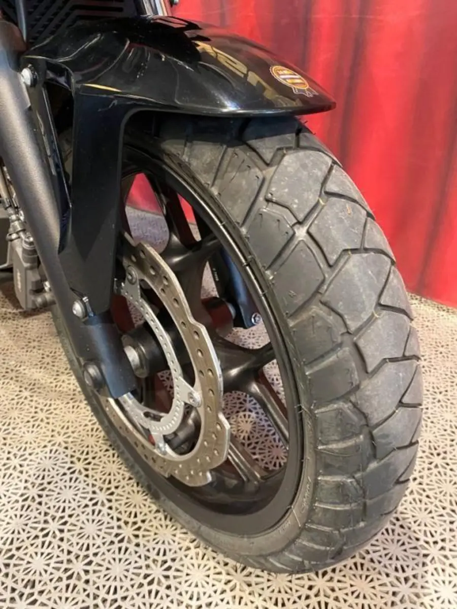 Extra utrustad med: Hasplåt, centralstöd, sidoväskor, kylargaller, handtagskydd, högre ruta, övre & nedre bågar & strålkastargaller.