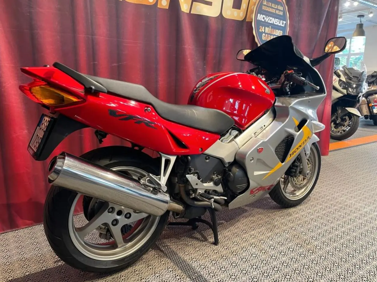 Ett mycket fint exemplar av VFR 800 Fi. En av de 250st producerade till Hondas 50 års jubileum 1999, lackeringen är inspirerad från Hondas racinghojar på 1960 talet.