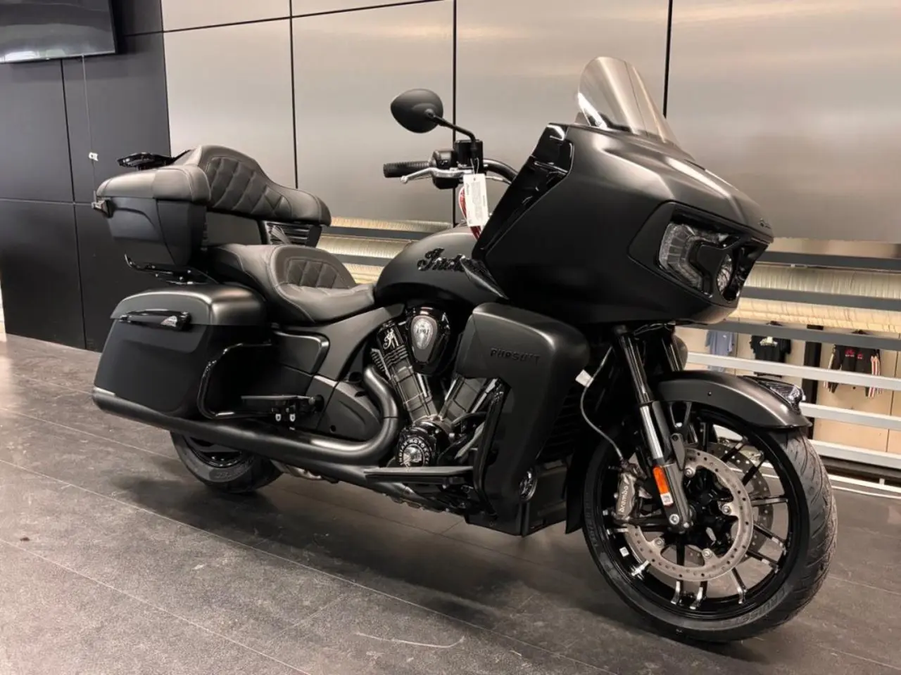 1768 cc Vätskekyld PowerPlus V-twin som levererar hela 171 nm vid 3900 rpm. Låg sadelhöjd (65cm). Pursuit är fullmatad med tekniska lösningar som bland annat 7" pekskärm med stöd för Apple Carplay. Om den längre resan finns inplanerad så har Indian Persuit enorma 133 liters packutrymme.