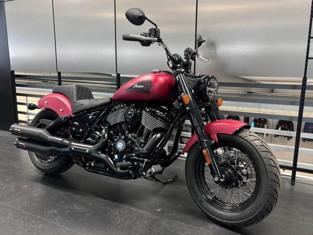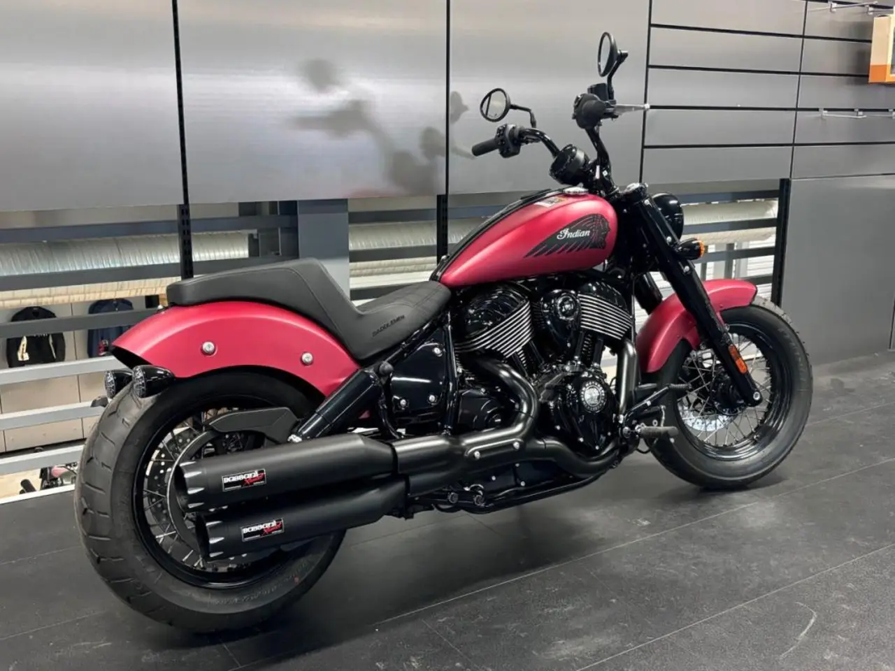Indian Chief Bobber 2024 kampanj med Bassani Exhaust och Saddlemen 2-up (värde ca 17.000kr).