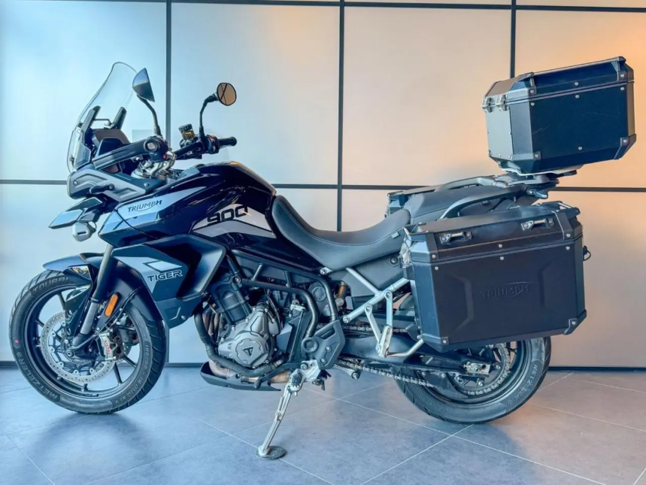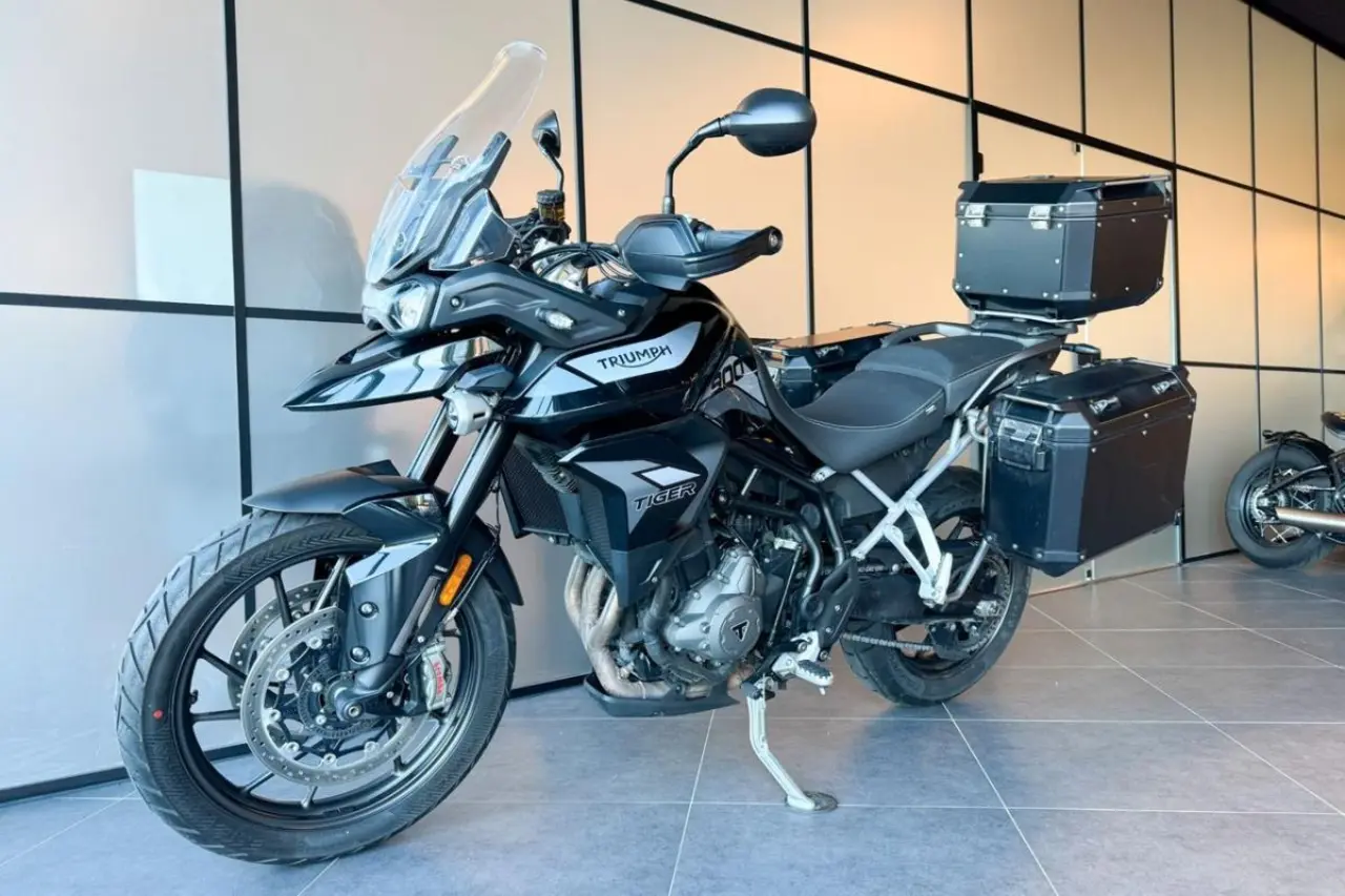 Lågmilad Tiger 900 GT Low med 3 väskor.