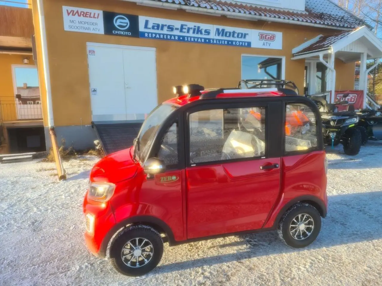 OBS NU I LAGER! Titan Zero R2 X4 är det närmaste man kan komma en riktig bil! Välj styre eller ratt i mitten eller till vänster. kan även fås med uttagbart lithium batteri för laddning i tex lägenhet! Här sitter du bekvämt och skyddad från väder och vind! Med alla funktioner som en vanlig modern bil har. Den eldrivna mopedbilen är utrustad till "Max" redan från början. Inget behövs köpas till. Du kör riktigt billigt - 80 öre/mil, och tyst. Baksätet rymmer 2... personer. Du parkerar bilen mycket enkelt och bland trängre utrymmen där "Vanliga" bilar inte får plats. En perfekt pendlar bil om du bor inom rimligt avstånd, eller varför inte ta en sväng ner på stan ? En extremt rolig bil för 3 personer, roligt och billigt......................... Teknisk Data: - Maxfart: 30km/h Typad som moped klass 2, är man född innan 1994 så behövs varken körkort eller förarbevis! - Laddtid: 6-8 timmar i vanligt 230V vägguttag - Räckvidd: 5-7 mil, (beroende på körsätt samt väder) Milkostnad: ca 80 öre/mil Färger: Röd, vit. blå utrustning: Ramuppbyggt chassi med deformerbara zoner för hög krocksäkerhet. Aluminiumfälgar taklucka Automatiskt halvljus LED-strålkastare LED-bakljus Kupévärme Defroster Stereo/back kamera och bluetooth, Skivbromsar För mer info samt återförsäljare gå in på https://titanzero.se....sökord titan zero elektrisk mopedbil r4 r5 . Var god meddela innan ni kommer. Köp till larm för endast 2495 kr monterat och klart! Obs dessa kan fås med styre istället för ratt, alla funktioner finns på styret så man behöver inte använda benen alls för körning, obs mycket bra plats för föraren