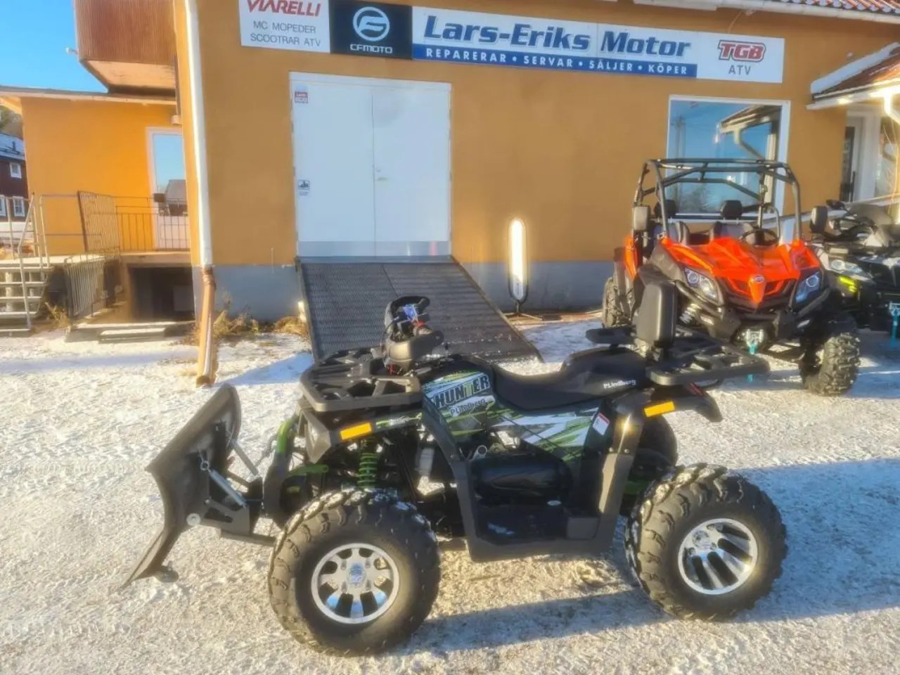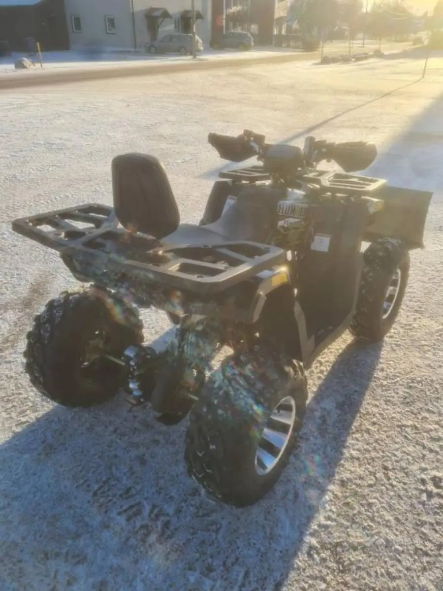 Elstart och backväxel. En fyrhjuling som passar för arbete på gården, den får inte köras på offentliga vägar. Lämplig för både vuxna och barn. ATV:n har en luftkyld 4-takts motor på 200 cc med en maxhastighet på 60 km/h. Maskinen har handskydd, digital hastighetsmätare och varvtalsräknare. Hunter har bagagegaller både fram och bak så att man lätt kan ta med sig utrustning. Maskinen är också utrustad med dragkula så att den kan användas till att dra släp, slaghackar eller andra redskap. Hunter 200 är utrustad med CVT transmission vilket betyder att den bara... behöver en växel sen är det bara att gasa och köra. Passa på nu endast 27900 kr inklusive moms. Med plog och vinsch . 33900 kr