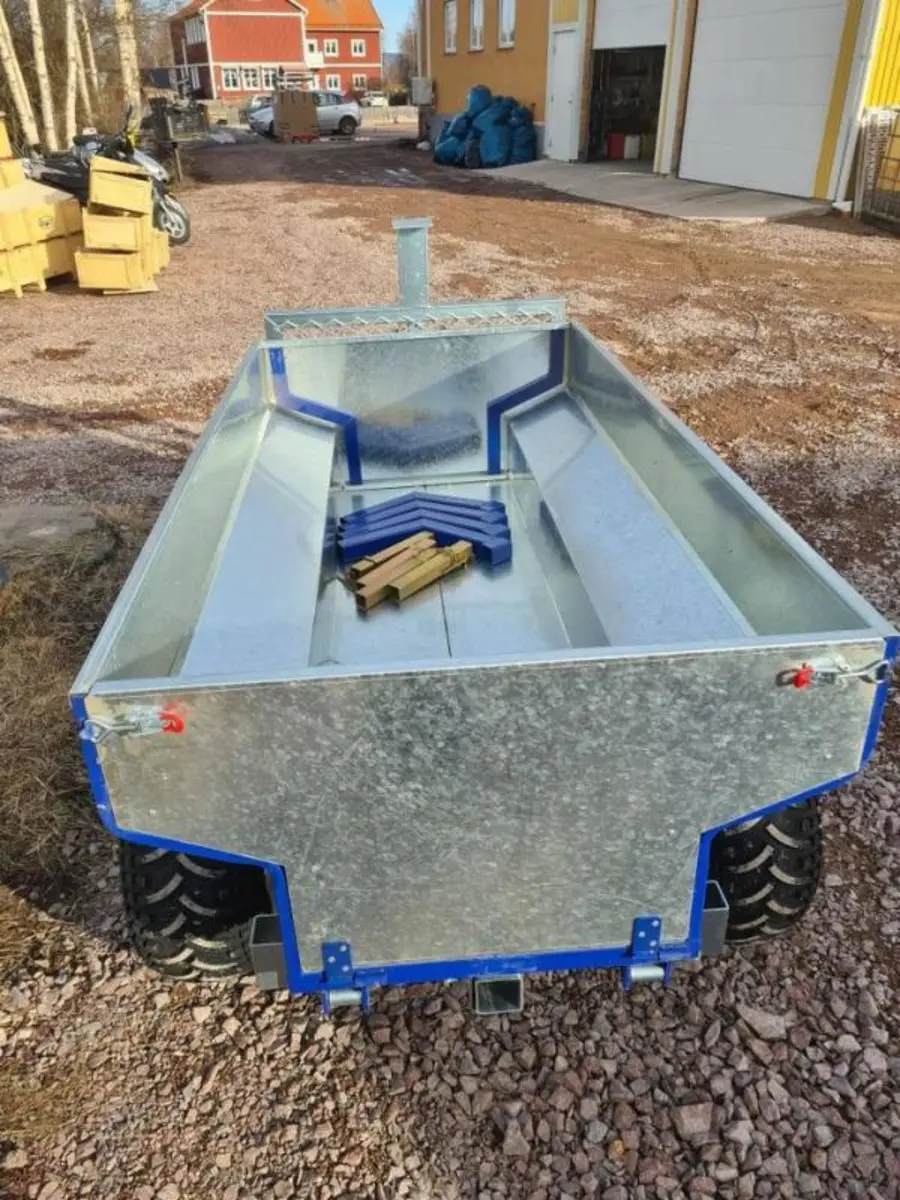 Storsäljaren Myran är en enkel och robust skogsvagn till din ATV eller redskapsbärare. Är galvaniserad, solida axeltappar och avtagbara stöttor. Klättrande, smörjbar boggi ger bra terräng- och köregenskaper.