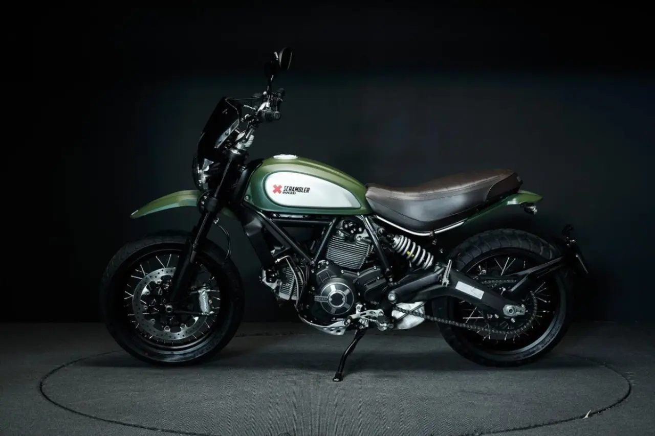 Ducati Scrambler 800 från 2015 i mycket gott skick! Läcker färgkombination med grön lackering och brun sadel.