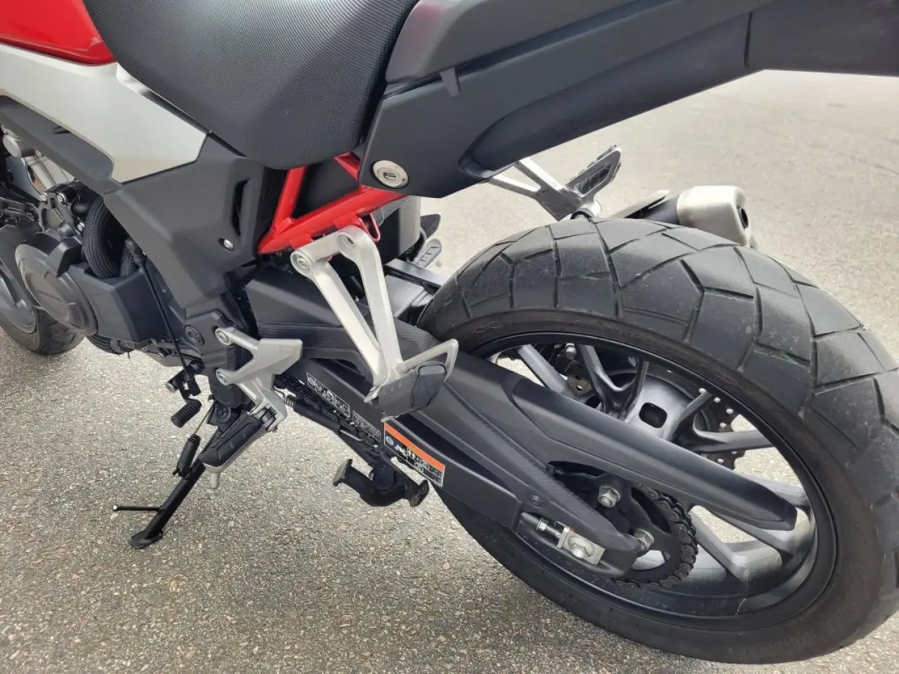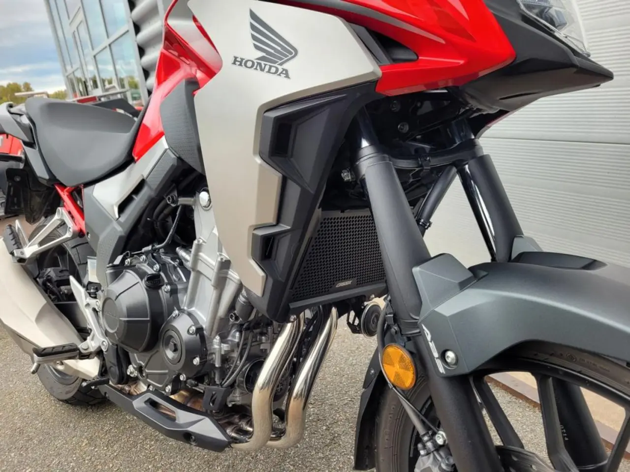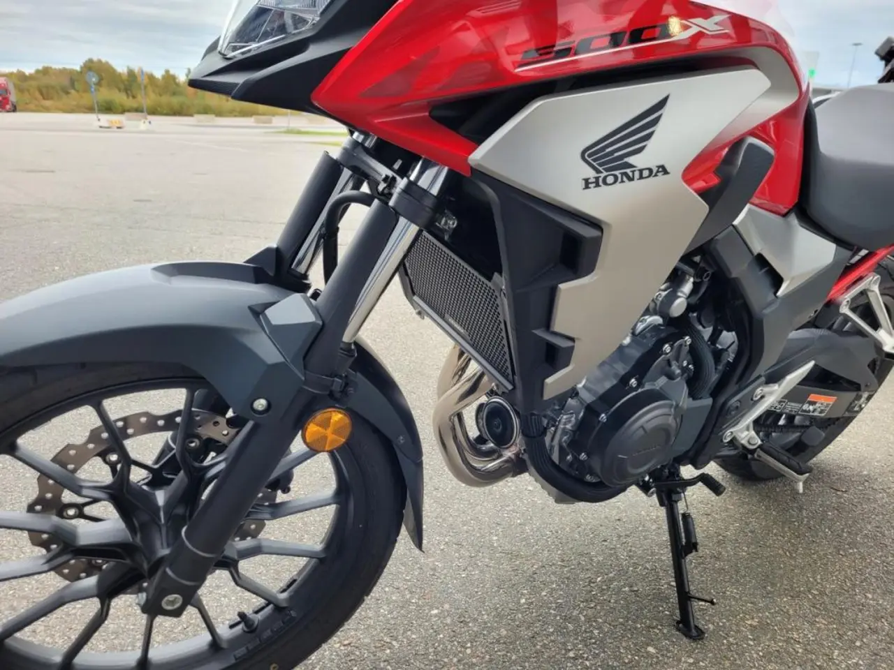 Utrustad med värmehandtag, 12-voltsuttag och handtagsskydd. Det sitter 16 kuggars framdrev monterat, men 15 kugg drevet följer med. Det finns också höjdjustering för framrutan. CB500