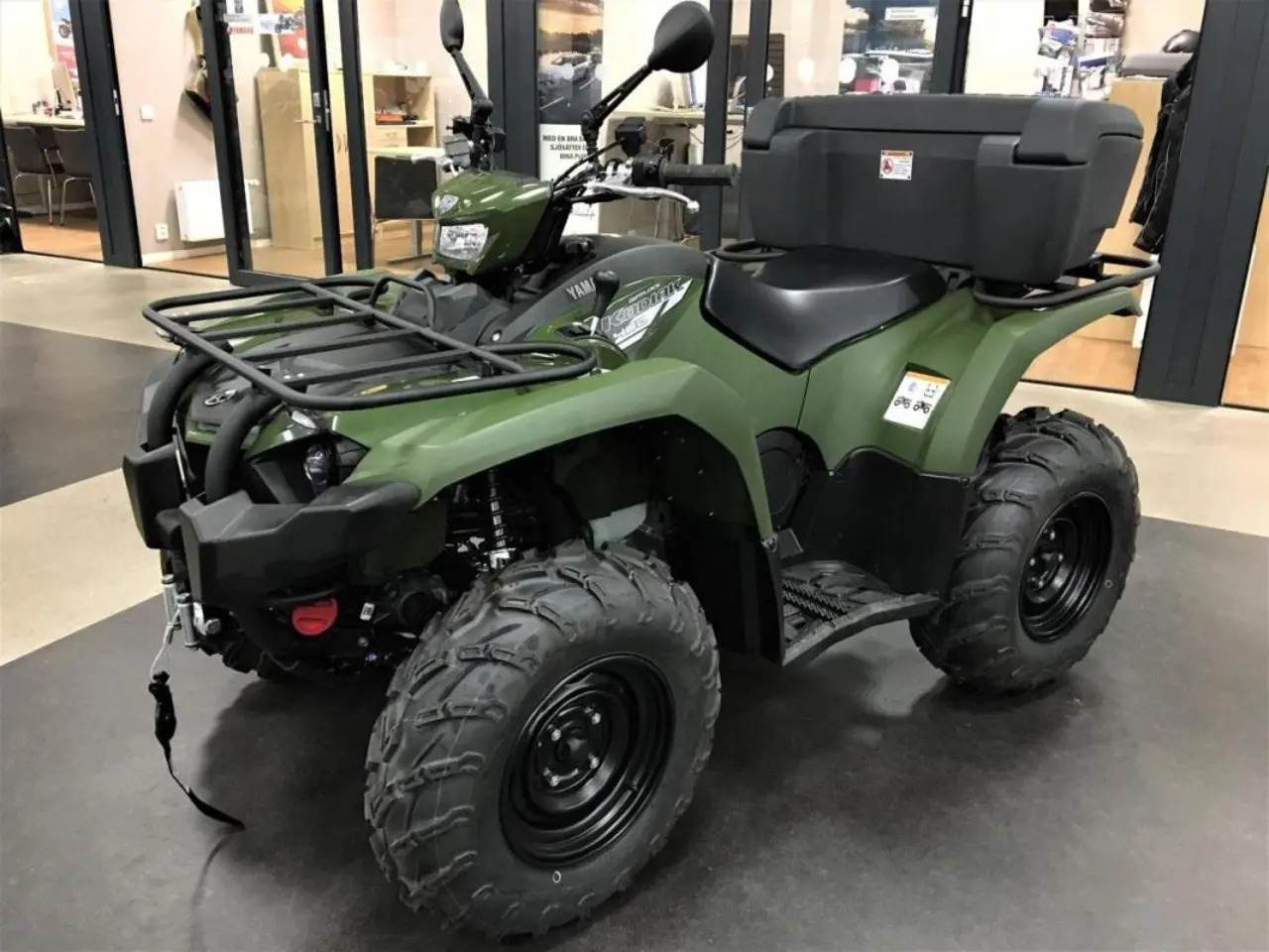 PÅ DENNA KODIAK INGÅR BAKRE PACKLÅDAN. TRAKTOR B. GODKÄND FÖR KÖRNING PÅ ALLMÄN VÄG. MAX HASTIGHET 60 KM/H. Kodiak är redan ett av de ledande namnen bland kraftfulla fyrhjulingar. Robusta Kodiak 450 EPS DL tar kategorin medelstora fyrhjulingar till nästa nivå. Med dess användarvänliga teknik med enastående hållbarhet och Yamahas tillförlitlighet klarar Kodiak 450 EPS DL av de tuffaste jobben i extrem terräng. Branschledande On Command-drivsystemet ger dig möjlighet att enkelt växla mellan två och fyrhjulsdrift med ett knapptryck och automatväxellådan Ultramatic gör varje uppgift mer avkopplande... och njutbar. Inget annat är så bekvämt. När jobbet är gjort får fritiden en ny dimension med denna mångsidiga fyrhjuling.