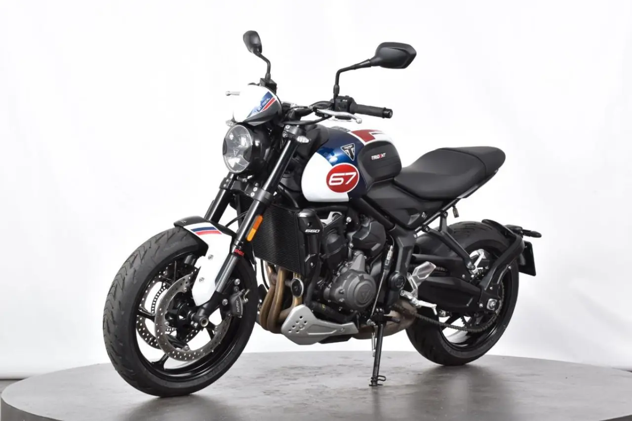 Upptäck Triumph Trident Triple Tribute – en hyllning till tidlös stil och rå prestanda. Med sin kraftfulla trippelmotor, ikoniska design och toppmodern teknologi är den skapad för att dominera vägarna. Kör med självsäkerhet och äventyr i varje kurva!