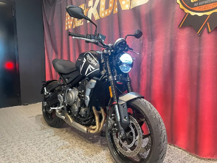 Trident ger en fantastisk körglädje med sin trecylindriga motor på 660cc och 80hk. Den är lättkörd och går perfekt på både låga och höga varvtal.