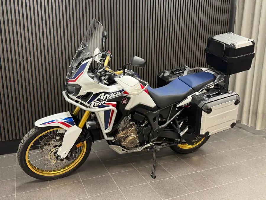 Utrustning: Sidoväskor. Topbox. Navigator. Dimljus. Motorbåge. Centralstöd. Bra att veta: Senaste service är gjord vid 2576 mil 2024-04-09. Besiktad till 2025-04-30. (CRF1000A. CRF 1000. Africa Twin)
