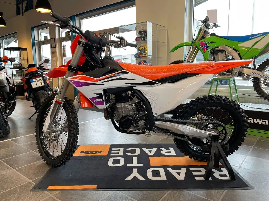 Nu har vi fått in en helt ny KTM 450 SXF årsmodell 2024, endast startad. Finns för omgående leverans.