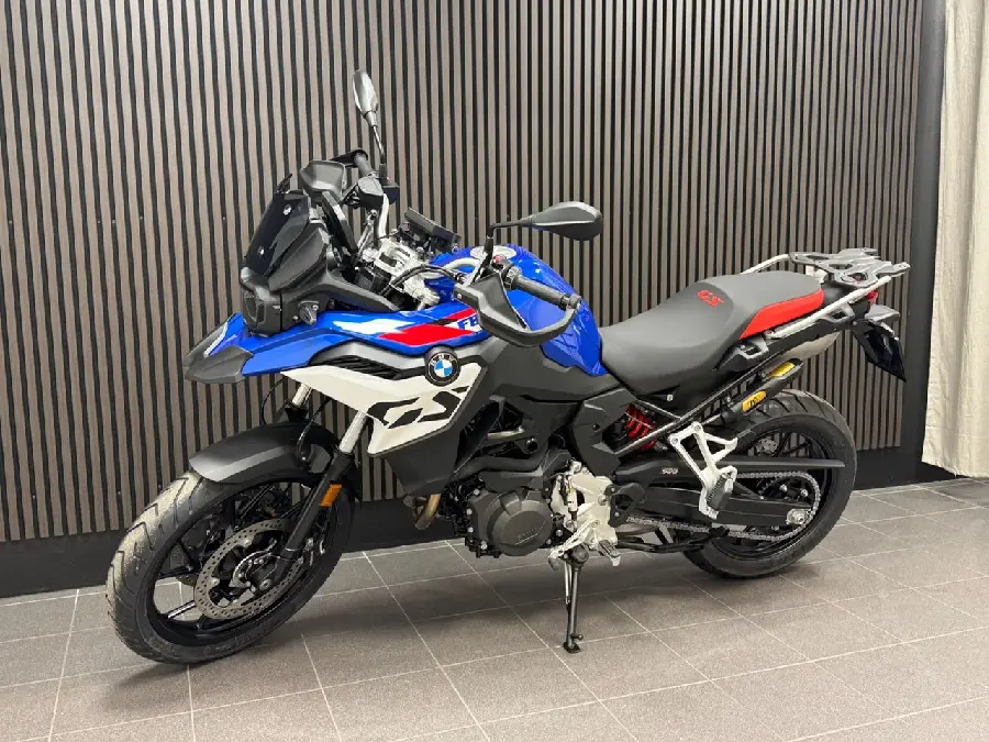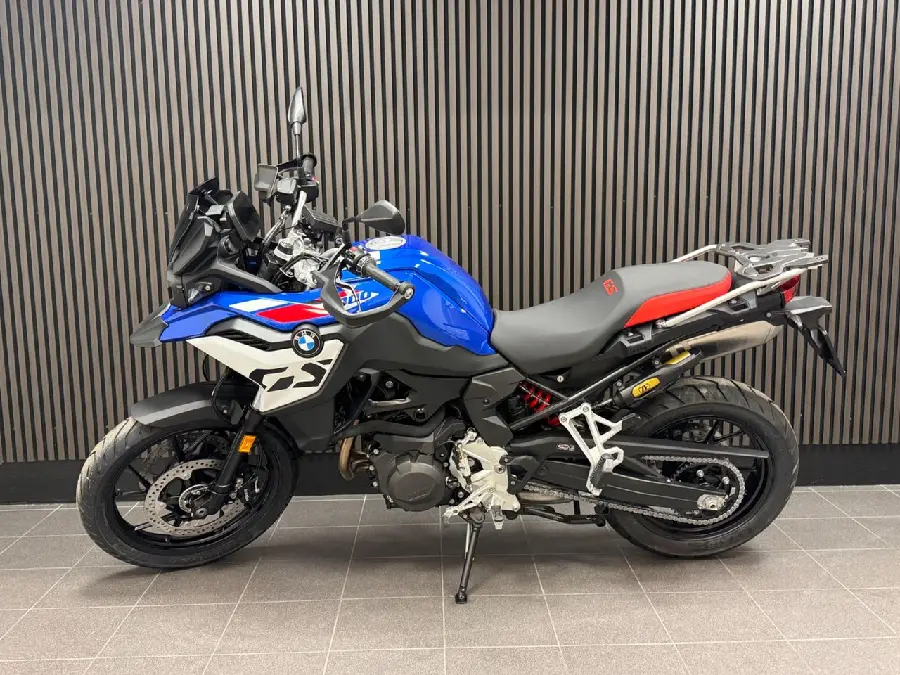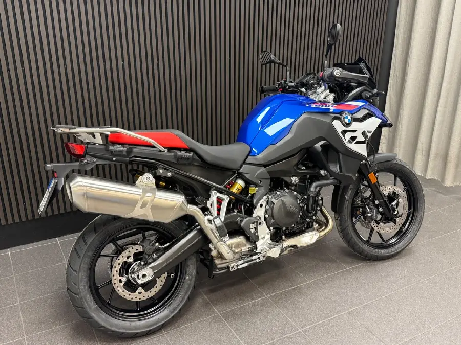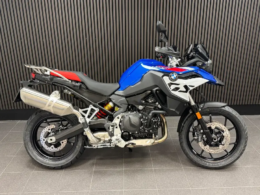 Utrustning: Sport. Comfort package (Keyless Ride. Preparation for GPS device. Cruise Control. Luggage rack with case holders). Touring package (Headlight Pro. Heated grips. Hand protection). Dynamic package (Dynamic ESA. Gear shift assistent Pro. Riding modes Pro). Tyre pressure control. Anti theft alarm system. Main stand. Intelligent emergency call. (F800. F 800GS. F800 GS. F 800 GS. F750GS)