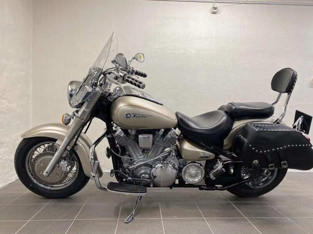 Yamaha XV 1600 A Wildstar. Endast 2477 mil och väldigt fint skick. Full servicehistorik och nyservad med nya däck fram och bak. Fullutrustad med Ruta, Sissybar och andra fotpinnar bak.