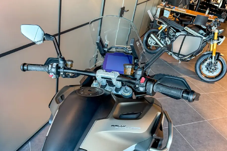 Rally-modellen är lämpad för landsväg men är även kapabel off road med sin 21 tums slanglösa ekerfälg fram och 18 tums dito bak.