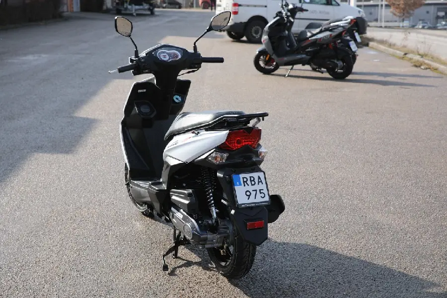 SYM Orbit III är utrustad med rejäla 12-tumshjul sidostöd och USB-uttag som standard.