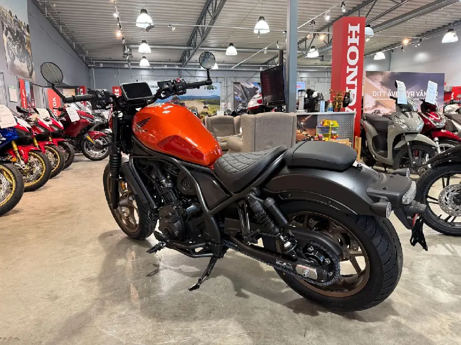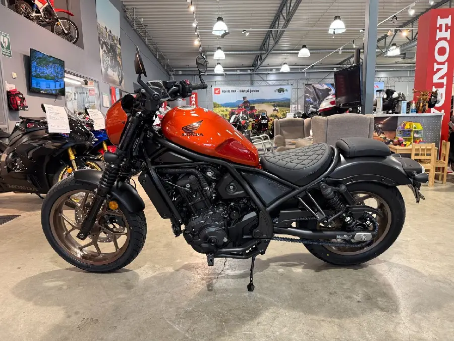 Hondas duo av stora glidarhojar i Rebel-familjen blir en trio 2025 med den nya ”street custom”-versionen CMX1100SE. Alla tre drivs av den beprövade parallelltwinnen på 1084 kubik som nu levererar mer pulver i låg- och mellanregistret. Bland nyheterna inför 2025 hittar vi en uppdaterad dubbelkopplingsväxellåda för smidigare krypkörning, ny 5-tums TFT-färgskärm med mobilanslutning och USB C-uttag. I hojarnas avancerade teknikpaket ingår elektronisk gasreglering, tre förinställda körlägen och två ställbara, antispinn med tre nivåer och farthållare.