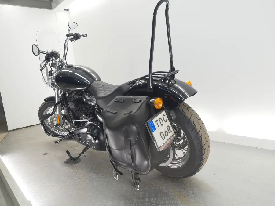 Fin Softail Standard -21 med 1620 mil på mätaren. En ägare, sidoflyttad regplåt, framflyttade fotreglage, sissybar, pakethållare, S&S-dämpare, hiflowfilter, customsadel, vindruta, motorbåge, custompinnar/handtag/speglar, m.m. Originaldelar medföljer. Vi har butiker i Stockholm, Göteborg och Malmö.