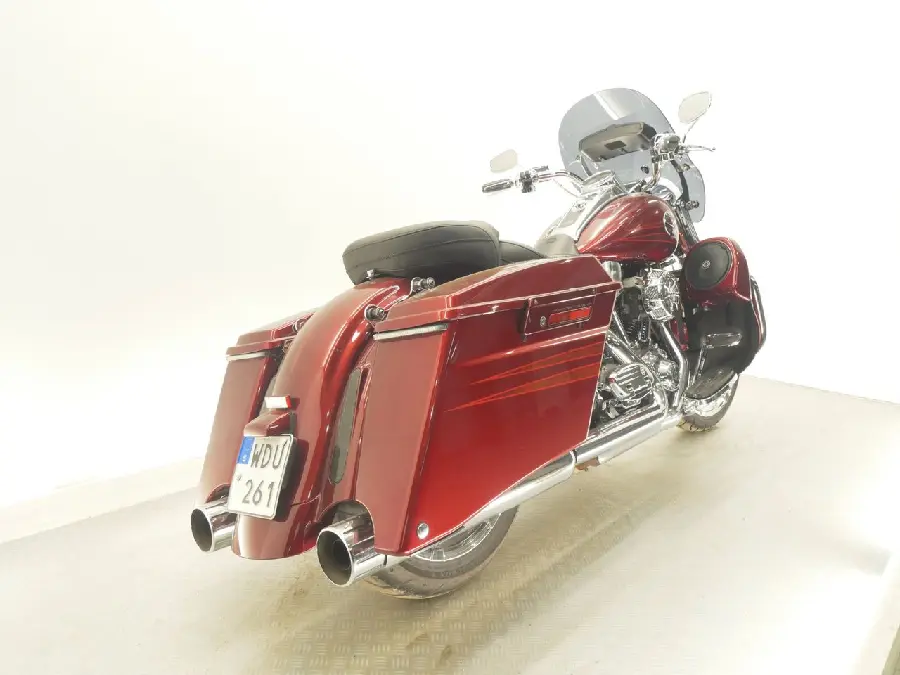 Mycket fin och välskött Roadking CVO -13 med 7.250 mil på mätaren. 1 ägare. Bänkad till 125 hk. Större insugsventiler, SE rullvippor. Red shift dual piston kamkedjesträckare, Fullsac Performance DX-headers. Går och låter grymt bra!