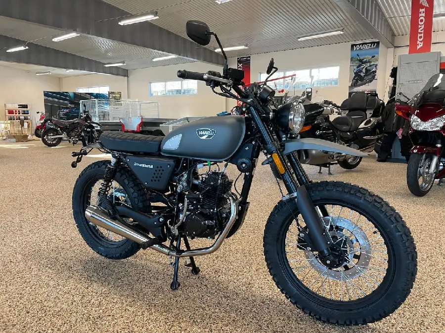 Med en 4-taktsmotor och en 4-växlad manuell växellåda är Viarelli Scrambler en mycket stabil... moped på vägen. Modellen har goda köraegenskaper samtidigt som den ligger stabilt på vägen, vilket gör den till ett tryggt val för dig som vill ha en säker och pålitlig moped. Du kommer att uppleva en smidig och rolig körupplevelse med Viarelli Scrambler oavsett om du kör på landsvägen eller genom staden.