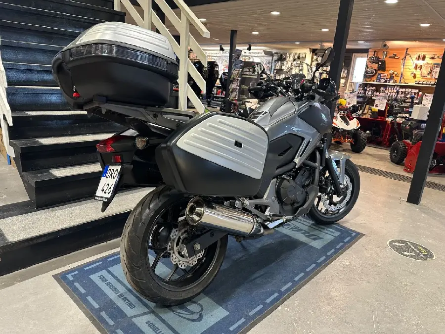 En otrolig mångsidig motorcykel Honda NC 750X med 214mil utrustad med väskor redo för äventyret i sommar.