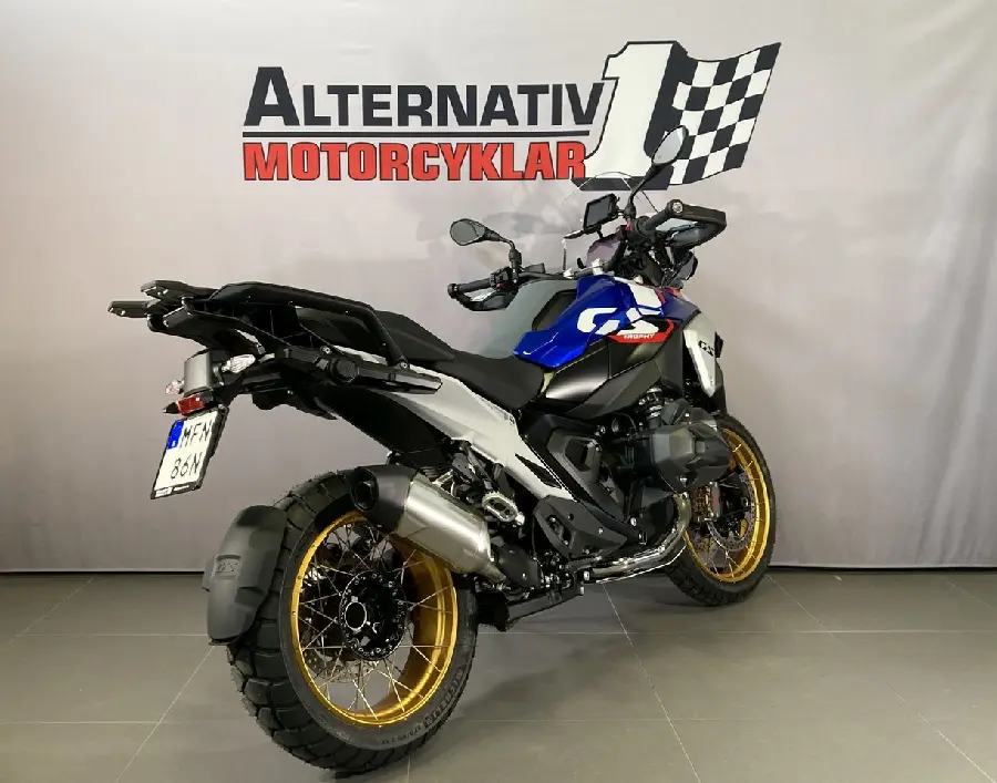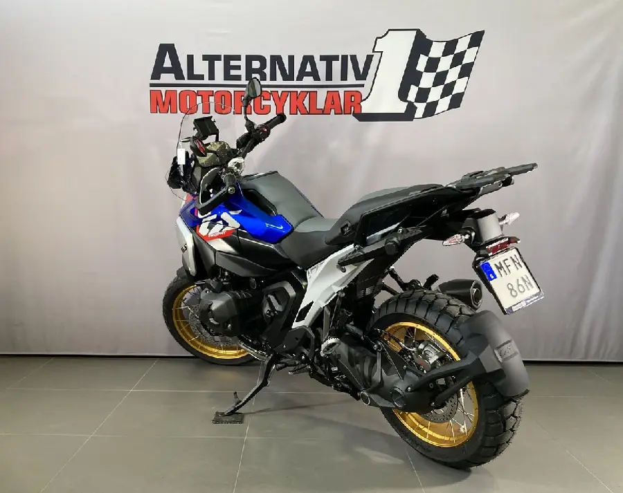 Kampanj till 2025-06-30 - värde 19.330:-. Touringpaketet och Connected Ride Navigator på köpet. BMW R 1300 GS i style Trophy. Nya R1300GS - nu med mer effekt och mer vrid. Lägre vikt och nytt utseende jämfört med föregångaren. En helt ny hoj som är förbättrad på alla punkter. Utrustad med : Adaptive Vehicle Height. Style GS Trophy (Komfortsadel förare - hög. Ekerfälgar). Dynamicpaketet (Växelassistent PRO. DSA. Körlägen PRO. Sportbromsar). Comfortpaketet (Passagerarkit. Elektriskt justerbar ruta. Centralstöd.). Innovationspaketet (Headlight PRO. Rear collision warning. Riding assistant). Touringpaketet... (Centrallås. Förlängare handtagsskydd. Väskhållare. GPS förberedelse). Guldfälgar. Fäste för topbox. IEC. Sätesvärme. Democykel finns i butiken - välkommen in för en provkörning #BMW #GS #1300 #1300GS #1300 GS #R1300GS #R 1300 GS #R1300 #R 1300 #R1250GS #Adventure #MFN86N #MFN #36N