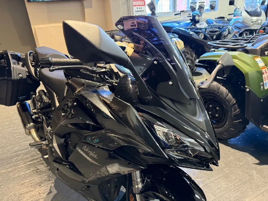 Z1000 SX i mycket fint skick och med fin utrustning. 1 ägare. 1200mil service gjord 2024-09-02 vid 1192mil på Aukt Kawasakiverkstad inkl bromsvätsebyte. Nya däck för ca 100mil sedan. Utrustning: Sidoväskor Kawasaki, Slip-on ARROW med dB-killer, Tailtidy och Kylarskydd (Original delar medföljer) - 12mån SMR Garanti
