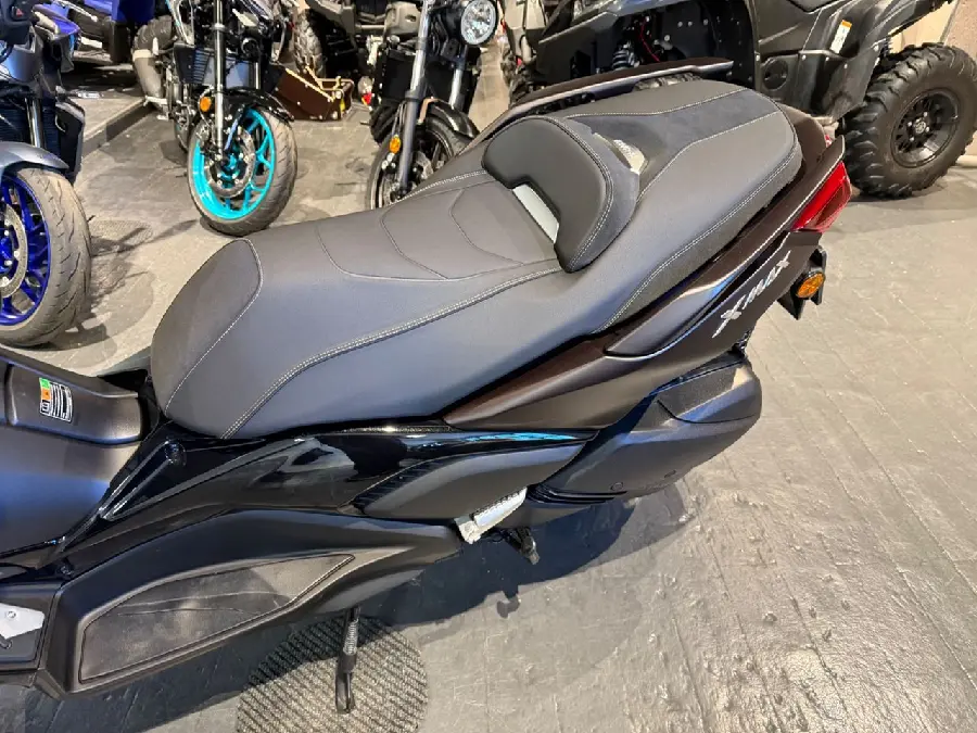 Den dynamiska vinklade kåpdesignen med sin X-formade främre belysning... ger XMAX 300 Tech MAX ett ännu mer radikalt och distinkt utseende – och formdesignade 3D-sidopaneler förstärker dess rena MAX-DNA. Med unika färger och exklusiva fotplattor av aluminium, en specialfinish på kåporna och ett sadelskydd i läderimitation är det här det smarta valet.