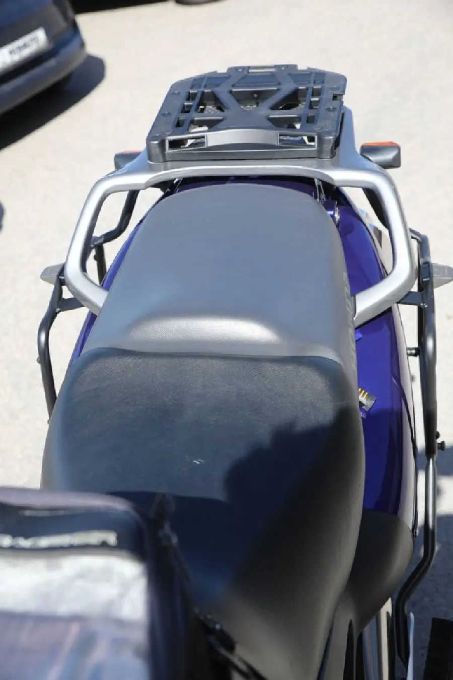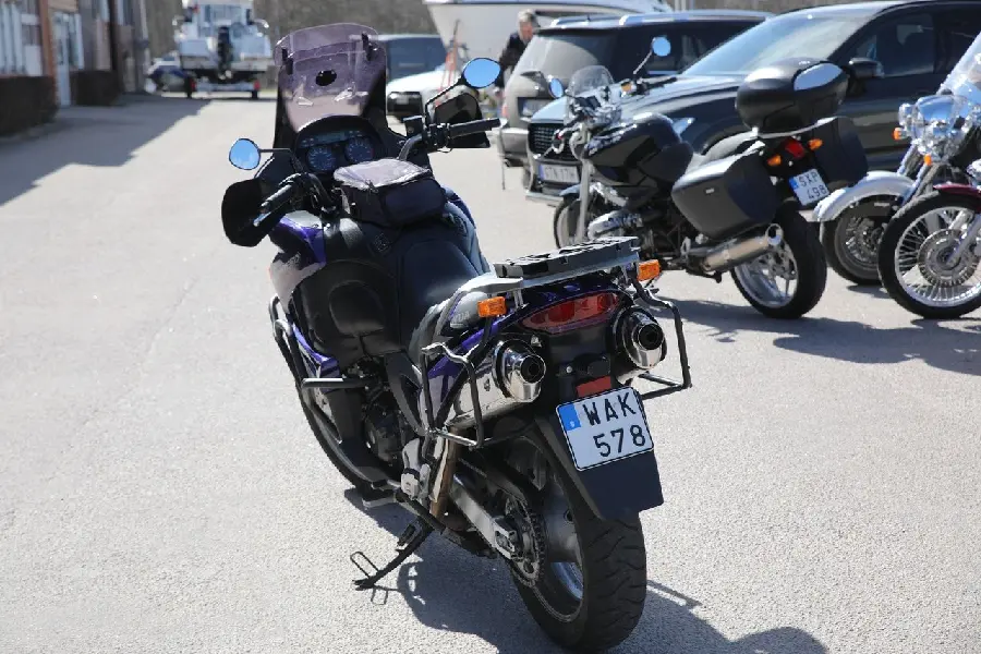 Här är ett sänkt svensksålt ex med fyra brukare för oss lite mer kortbenta utrustad med Givi-väskor toppbox original motorbåge Bagster tankskydd tankväska värmehandtag och högre kåpglas med extra vindavvisare.