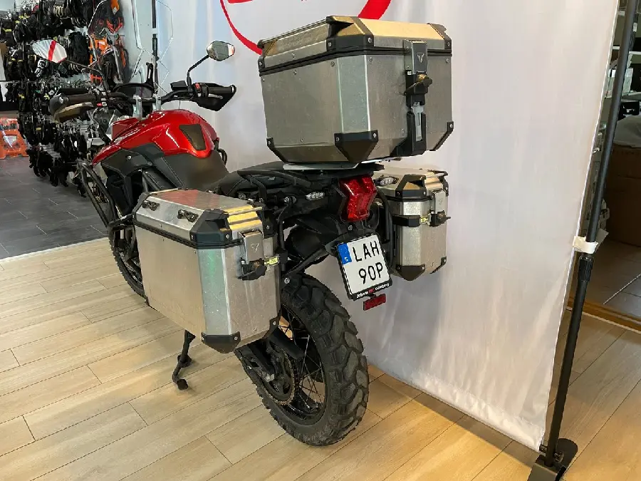 Utrustad med Triumph aluminium-väskor, handtagsvärme och sadelvärme för både passagerare och förare.
