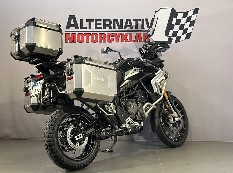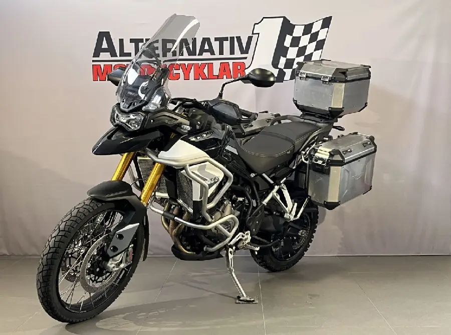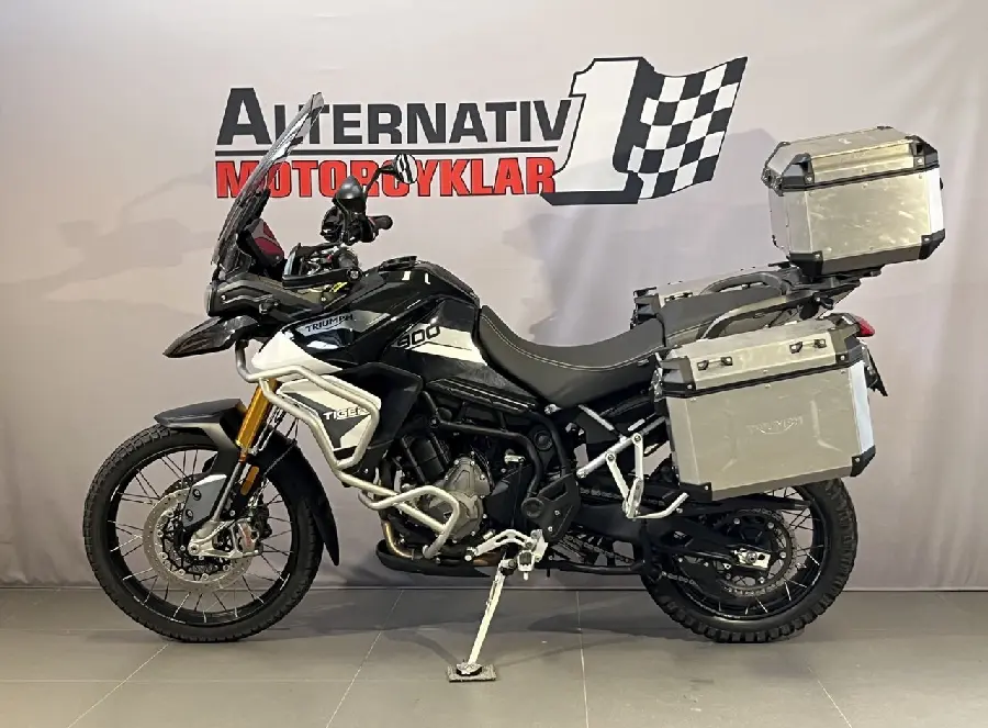 En fin Tiger 900 Rally från 2020 med med 2015 mil på mätaren. Utrustad me original sidoväskor och topbox i aluminium. Övre och undre motorbågar från Triumph. Justerbar sitthöjd med justerbar bak- och framfjädring. Justerbar vindruta och styre. Även justerbara broms- och kopplingsgrepp. Handtagsskydd. Handtagsvärme. Stor 7 tum TFT-skärm. Färddator. Farthållare. Avstängbart TC. Kurvoptimerad ABS och TC. LED-belysning. Ekerfälgar. Extrautrustad med : 3st aluminiumväskor. Motorbågar. Tankpad. Övre motorbågar. Kylarskydd. Senast servad oktober 2024 vid 1919 mil. Besiktigad till oktober 2026. Manual... och extranyckel. Förmedlingsuppdrag så inget inbyte på denna hojen. #Triumph #Tiger900 #Tiger 900 #Tiger 900 Rally #Tiger900Rally #Rally #900Rally #900 Rally #ATU31Z #ATU #31Z