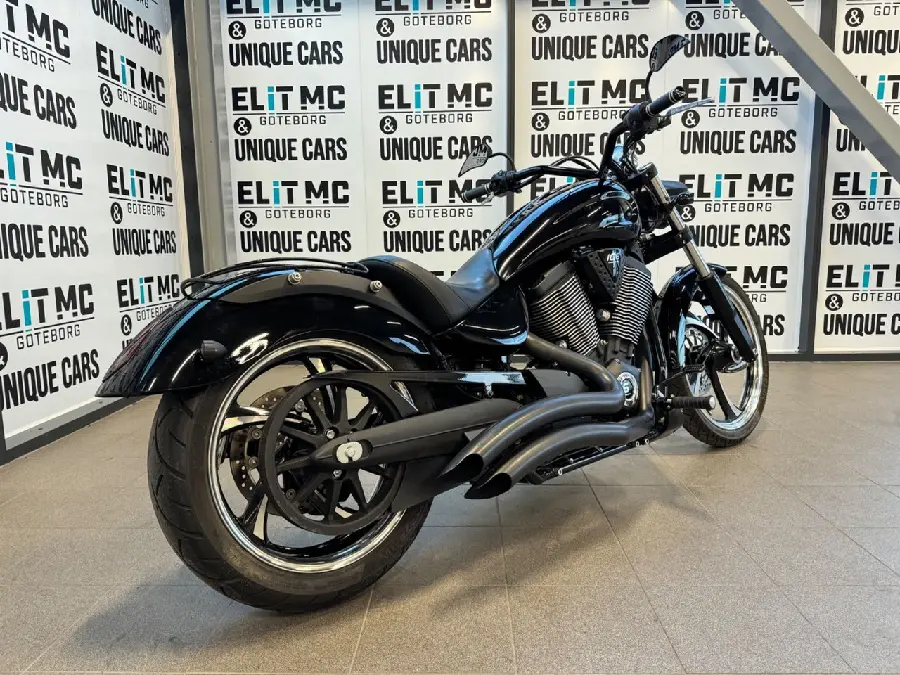Polaris Vegas 8-Ball 2013 är en stilren och kraftfull cruiser som tillhör Victory Motorcycles, ett märke som numera är nedlagt men som tidigare var en del av Polaris Industries. Vegas 8-Ball-modellen är känd för sin minimalistiska design med svart lack och en kraftfull V-twin-motor.