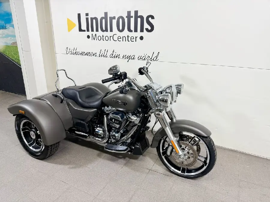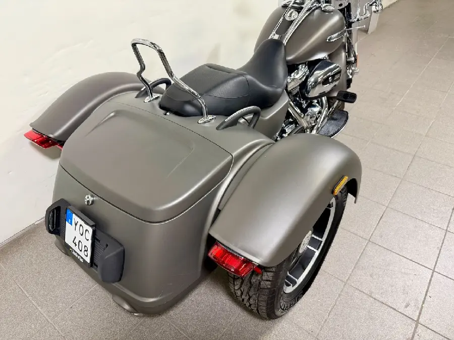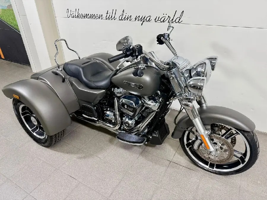Ett unikt tillfälle Harley-Davidson Free Wheeler Trike 2019 i Gray Denim Metallic och endast 10 mil på mätaren.