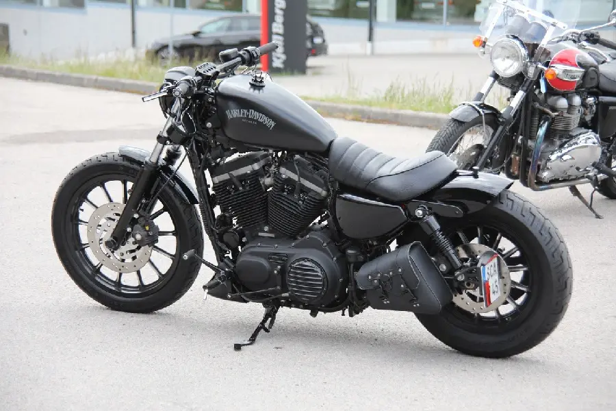 Harley Davidsons Sportster XL883 Iron är den tuffaste i familjen med anor från 1950-talet som moderniserats rent tekniskt under åren, men som ändå behållit sitt häftiga utseende och sin unika själ. Med Iron har H-D tagit sin Sportster till sin extrem sett till rå kraft, avskalad design och en mattsvart outfit som knappast lämnar någon oberörd.