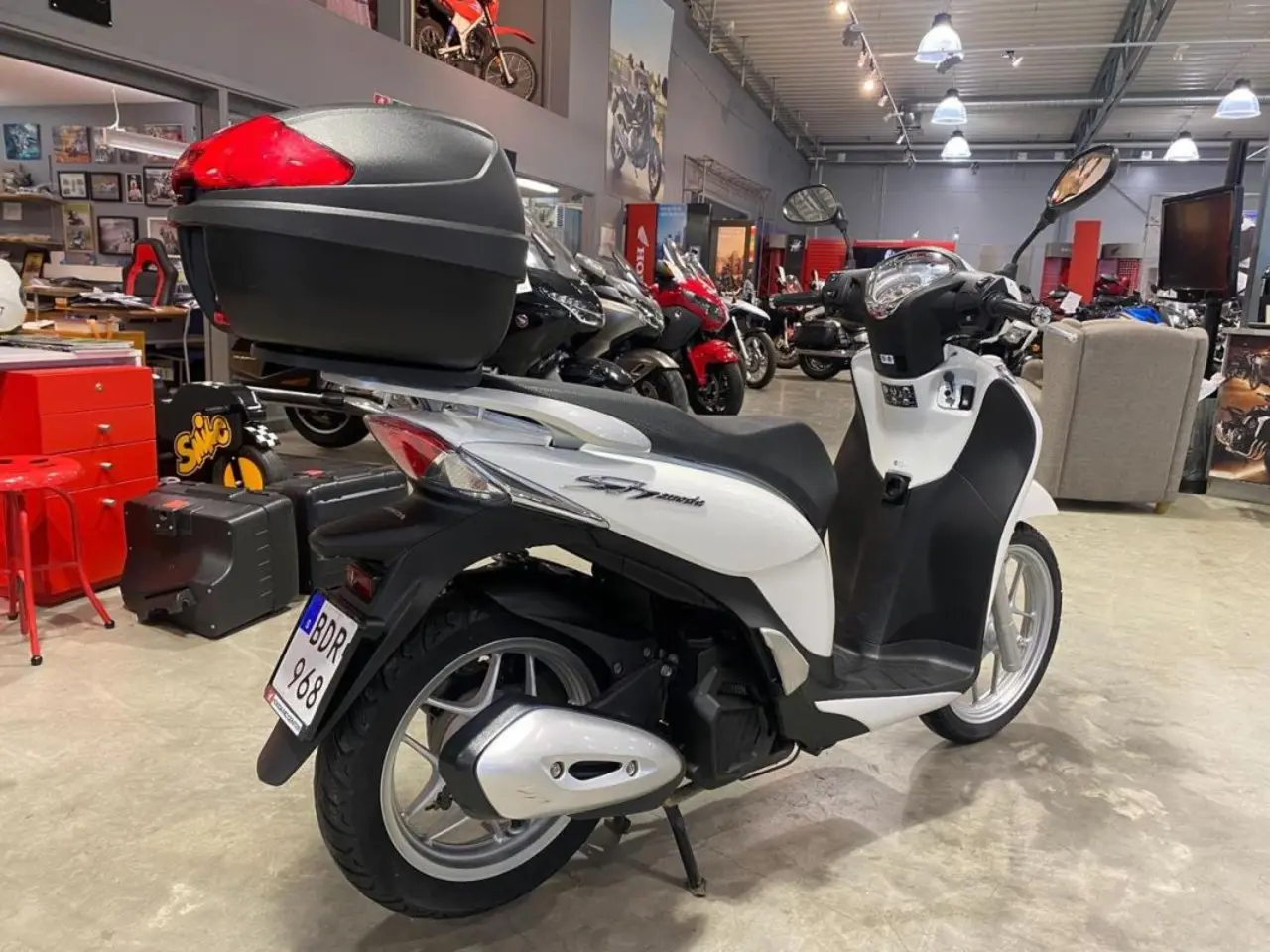Utrustad med: Toppbox, start stop funktion.