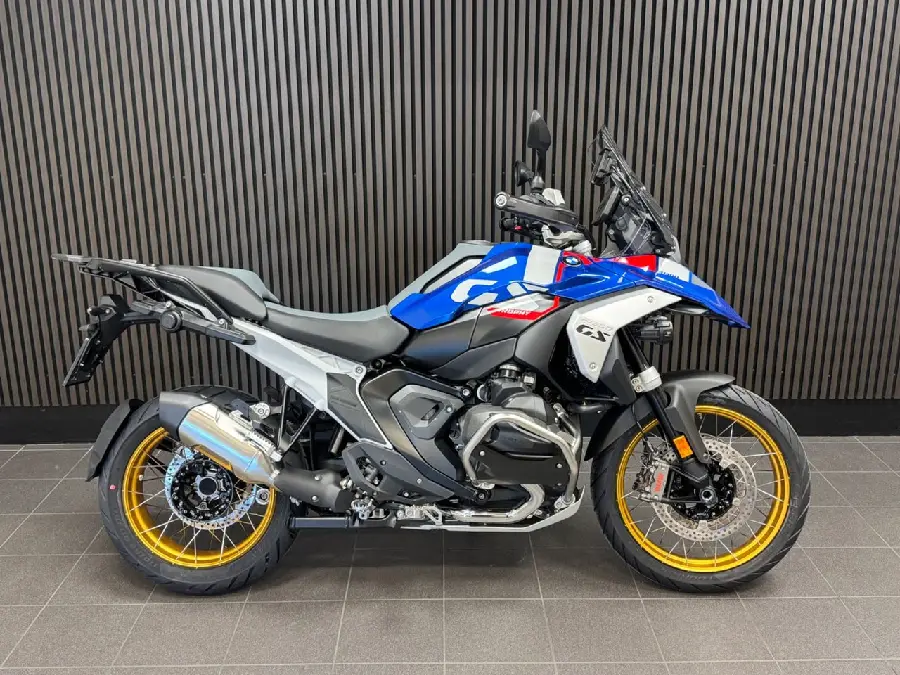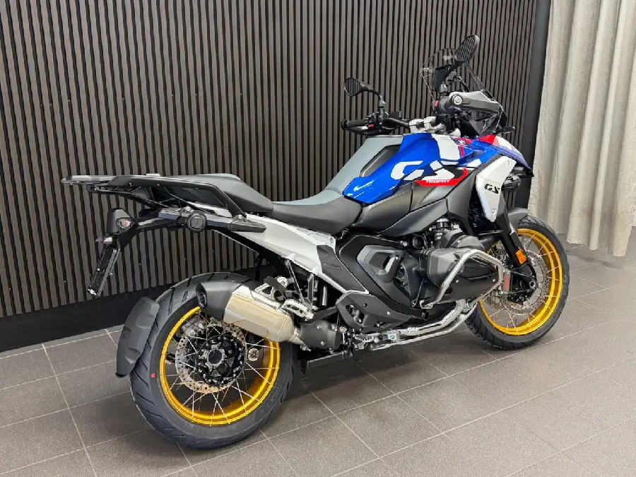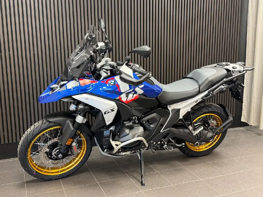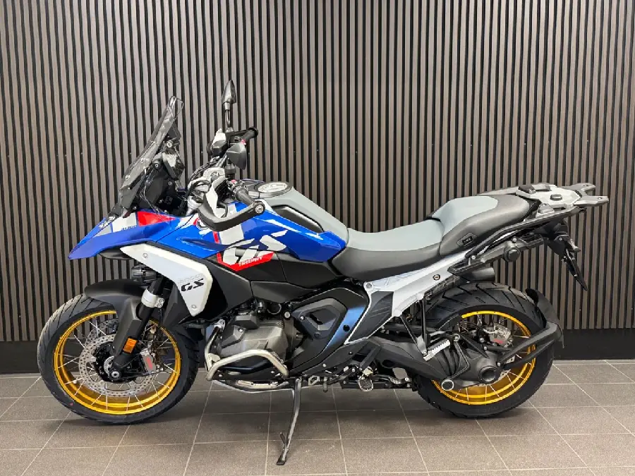 Kampanj! Just nu ingår Touring package samt Connected Ride Navigator utan extra kostnad värde 19.330:-. Ord.pris 316.895:- Utrustning: GS Trophy (Comfort riders seat. Cross spoke wheels golden). Adaptive vehicle height control. Comfort package (Passenger kit. Windscreen el. adjustable. Main stand). Touring package (Preparation for GPS device. Chromed exhaust pipe. Central locking system. Hand protector extension. Case holders). Dynamic package (DSA. Gear shift assistent Pro. Riding modes Pro. Sports brake). Innovation package (Headlight Pro. Rear collision warning. Riding assistant). Enduro package... Pro. Seat heating. Additional fog light. Anti theft alarm system. Topcase carrier. Intelligent emergency call. (R1300GS. R 1300 GS. R1300 GS. R 1300GS)