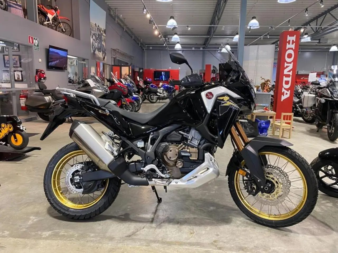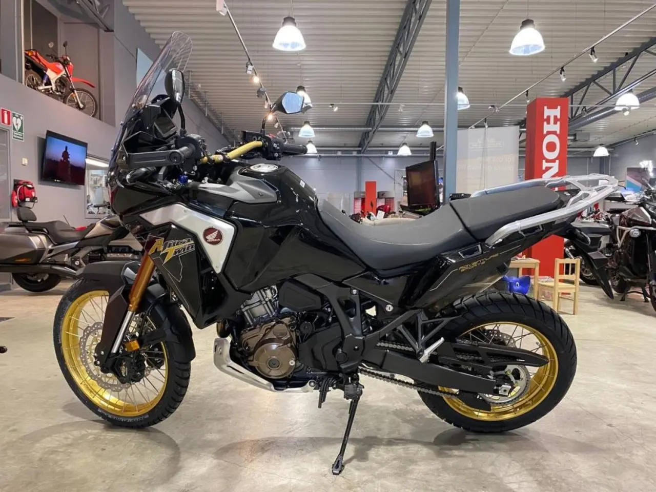 Hondas maffiga äventyrshoj tar ett stort steg i utvecklingen och blir mer inriktad på bekväm och mångsidig långfärdskörning. Motorn är större, har mer effekt och vrid och uppfyller avgaskraven EURO5. En 6-axlad tröghetsmätare (IMU) sköter nu körlägen, antispinn och ytterligare tre hjälpmedel: kurvtagnings-ABS. Wheelie Control. Rear Lift Control. Instrumentpanelen har en rejäl 6, 5-tums färgpekskärm som kan anslutas till Apple CarPlay® och Bluetooth. Dubbla LED-strålkastare med varselljus och kurvtagningsljus. Farthållare, värmehandtag och 12-voltsuttag är standardutrustning.