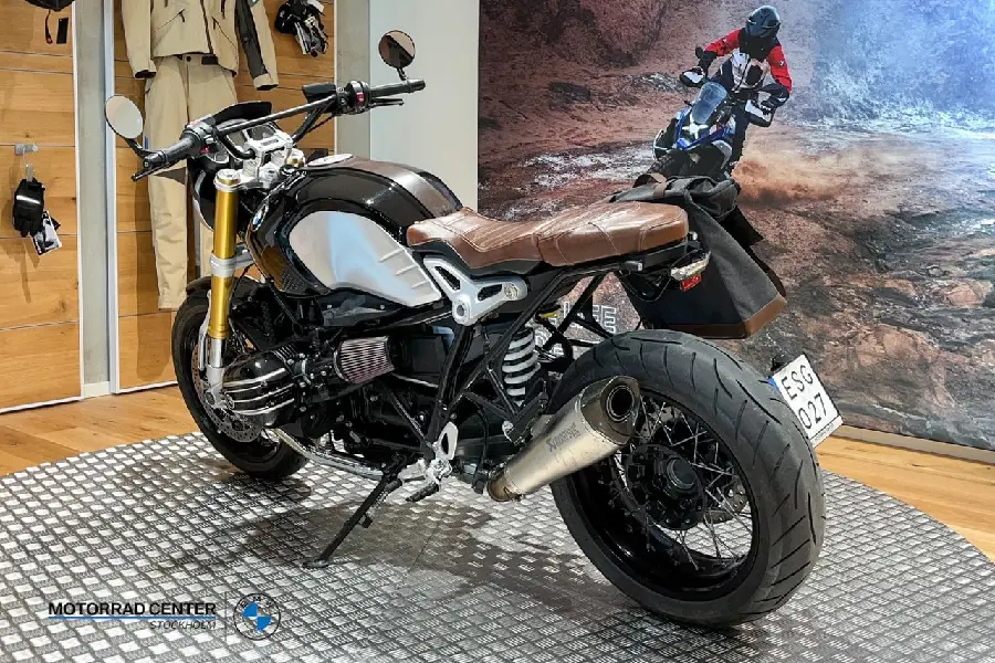 BMW Motorrad Center Stockholm erbjuder dig en väl omhändertagen BMW R Nine T med endast 720 mil på mätaren. Motorcykeln är utrustad med bl.a. Akrapovic slip on, bar end mirrors, sidomonterad registreringsskylthållare, tankstrap, justerbara fotpinnar, justerbara broms och kopplingshandtag, högre styre för mera upprätt körställning, mjuk sidoväska, brun sadel som inger en mera "cafe racer look" m.m.