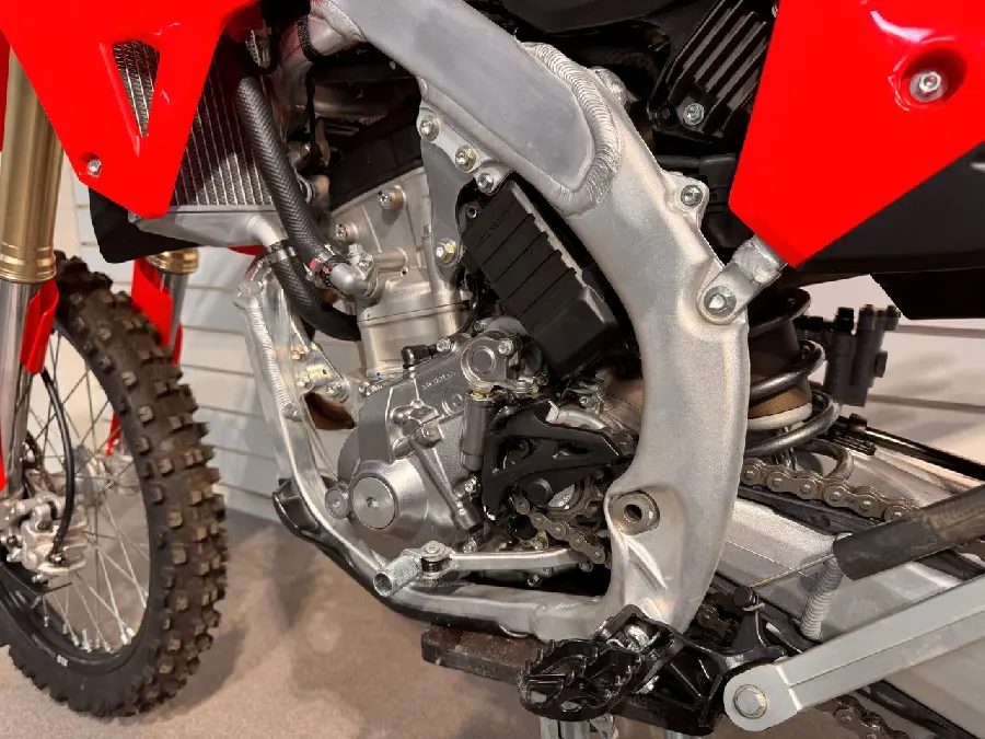 Byggd på samma grund som CRF 250 R men med enduro-anpassningar direkt från fabrik, mjukare fjädring och 18” bakfälg. Klar för tuffa spår och långkörningar i skog och mark!