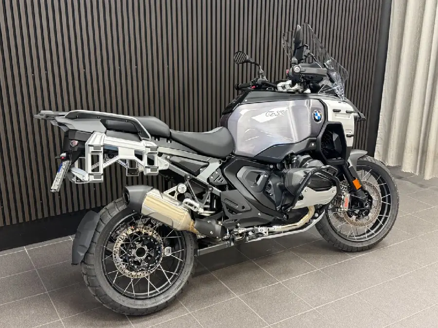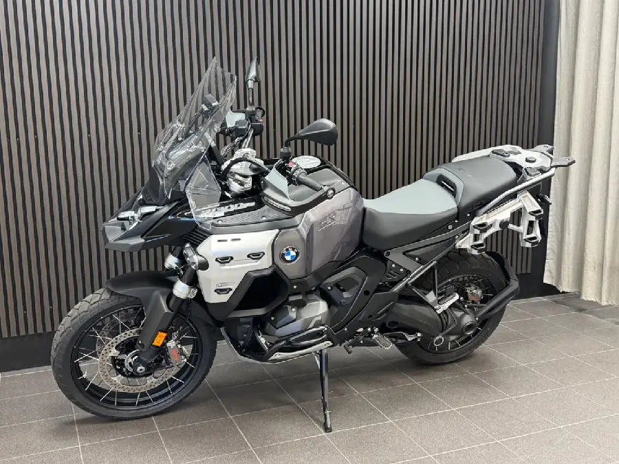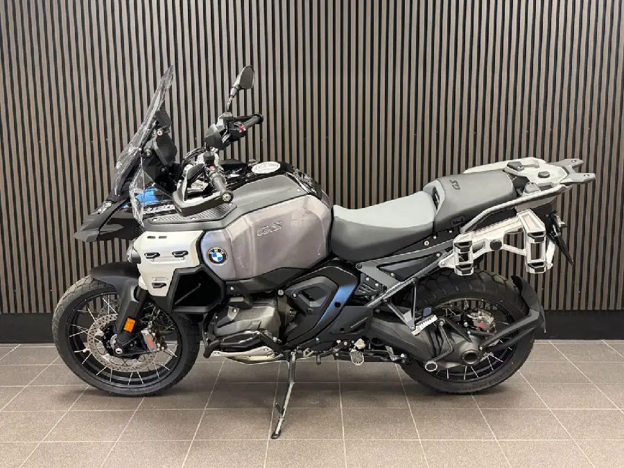 Nypris: 313.945:- Utrustning: Triple black (Aluminium fuel tank. Cross spoke wheels. Comfort riders seat. Comfort passenger seat). Touring package (Preparation for GPS device. Chromed exhaust pipe. Windscreen el. adjustable. Main stand. Case holder for aluminium cases). Dynamic package (Riding modes Pro. Sports brake). Automated shift assistant. Innovation package (Headlight Pro. Rear collision warning. Riding assistant). Adaptive vehicle height control. M battery. Anti theft alarm system. Topcase carrier. Intelligent emergency call. Bra att veta: Reg.nr TKF51G. (R1300. R1300 GSA. R1300GS Adventure.... R1300GSA)
