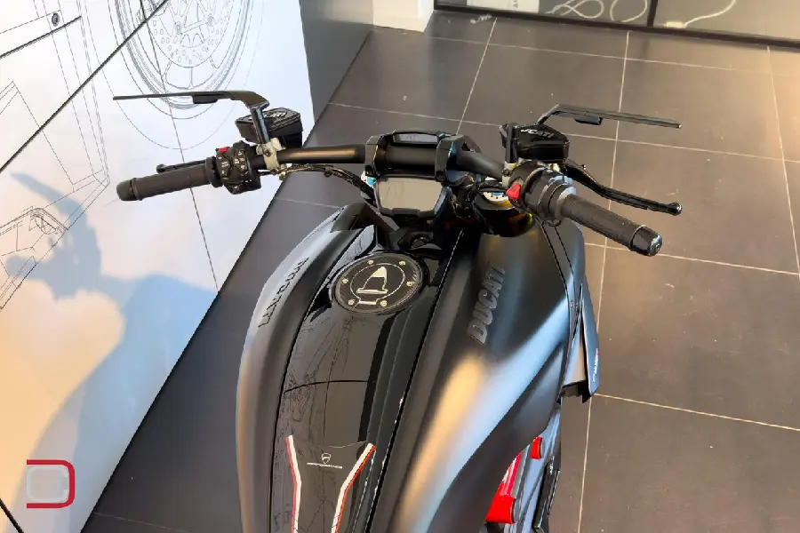 Diavel 1260S med helt rätt utrustning! Helsystem inklusive mappning från Termignoni, värmehandtag original från Ducati samt Rizoma Stealth backspeglar.