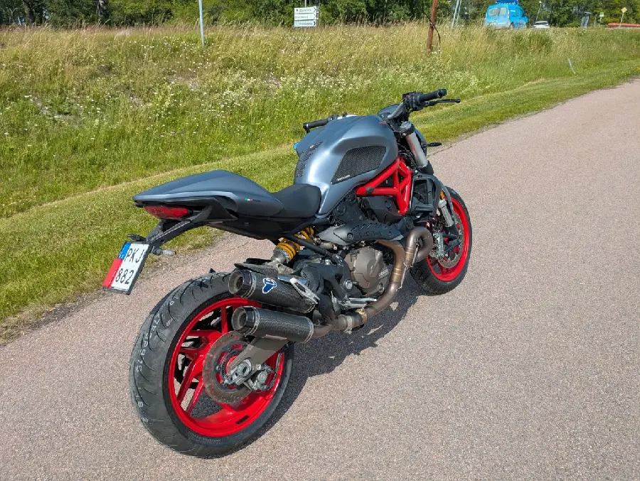 En fräck 821 monster, 110hk attityd! Termignoni-blås ger rätta ljudet, helt nya däck monterade, 1718 mil på mätaren.