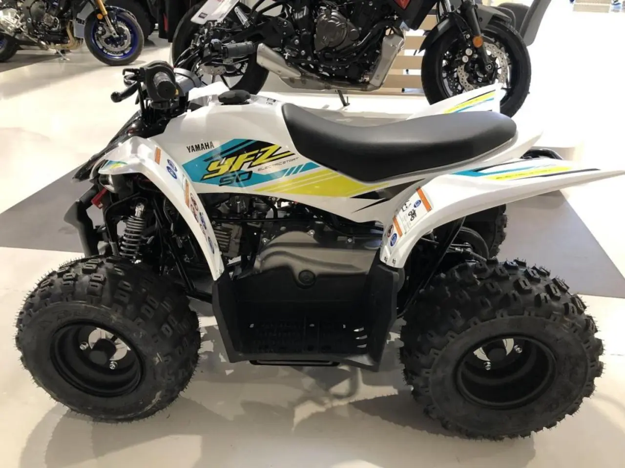 och YFZ50 har en rad funktioner som ger föräldrarna möjlighet att kontrollera körningen. Hastigheten kan begränsas med tomgångsjusteringsskruven och varvtalsbegränsaren, och genom att dra i linan som är ansluten till en linbrytare stängs motorn av omedelbart.Yamaha YFZ50 är enkel att använda, kul att köra och enkel att underhålla vilket gör den till det självklara valet för ansvarsfulla vuxna. Minifyrhjulingen har samma design som racern YFZ450R och står nog högst upp på alla barns önskelista!