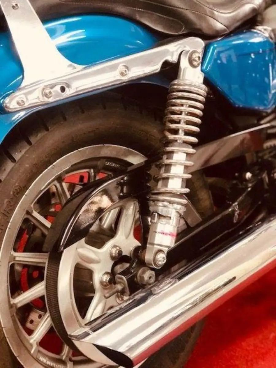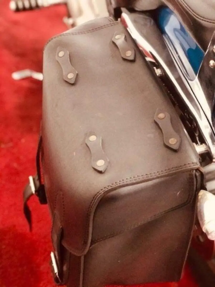 Utrustad med Sissybar, Lejonkulan-väska och Öppet avgassystem.