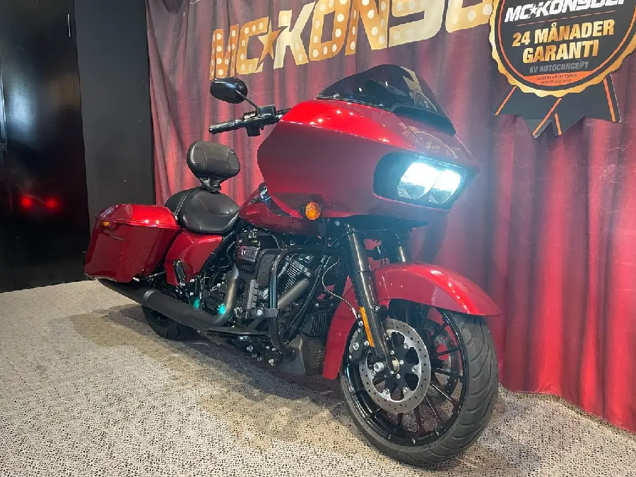 Fräck Road Glide Special med Milwaukee-Eightmotorn på 107cui som mullrar riktigt gött. Boom Box infotainmentsystem med 6,5" peksskärm, Bluetooth, navigation och Apple CarPlay. En perfekt Power-Cruiser med Touringkapacitet tack vare väskorna och det avtagbara ryggstödet med snabbfästen. Mjuka innerväskor. Highway Pegs. GPS. Mörk ruta.