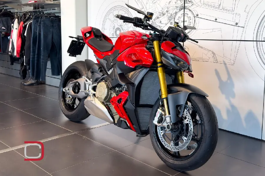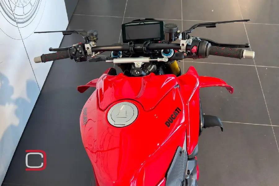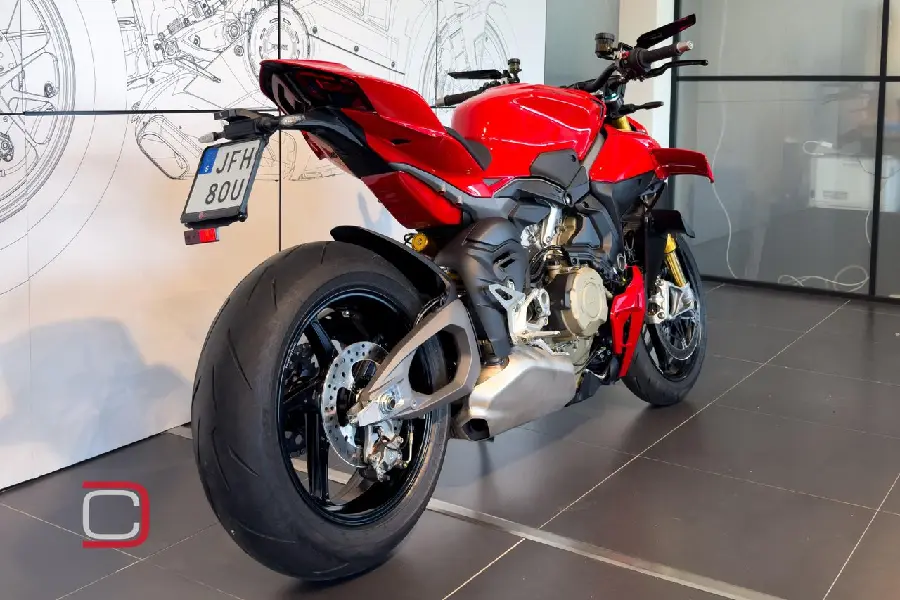 Ducati Streetfighter V4 S utrustad med bland annat Rizoma Stealth-backspeglar, quickshift, elektronisk fjädring från Öhlins (även styrdämpare), lättviktsfälgar och justerbara körlägen.