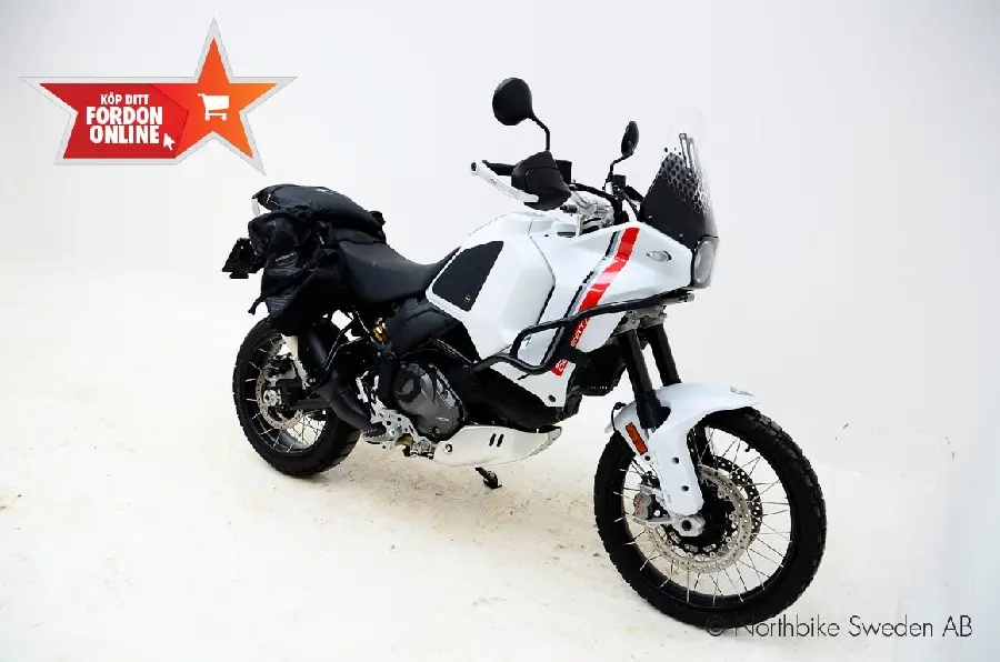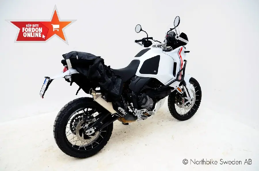 Upptäck friheten med Ducati DesertX 2023 – en kompromisslös äventyrsmaskin med rå kraft och avancerad teknik. Utrustad med en kraftfull 0.94 L-Twin-motor, Ducati Quick Shift (DQS) för blixtsnabba växlingar, och fullmatad med säkerhets- och körhjälpsteknik: EBC (Engine Brake Control), DTC (Ducati Traction Control) och DWC (Ducati Wheelie Control) – allt för maximal kontroll i alla lägen.
